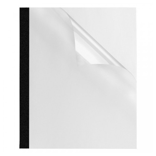 Carpetas Térmicas 15 mm Negro/Azul para hasta 150 hojas x20 unid (color aleatorio) Frente PVC cristal brillante 200 mic., contratapa cartulina cuero 400 mic. Insumo esencial para encuadernar con equipo Dasa Termobind MB500. Presentación profesional en segundos y sin esfuerzo de catálogos, listas, balances, etc. Al ser plana es ideal para enviar por correo o archivar maximizando espacios.