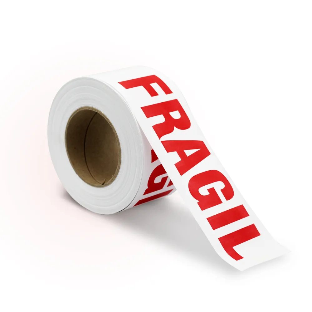 Cinta adhesiva blanca con la leyenda FRAGIL impresa en rojo