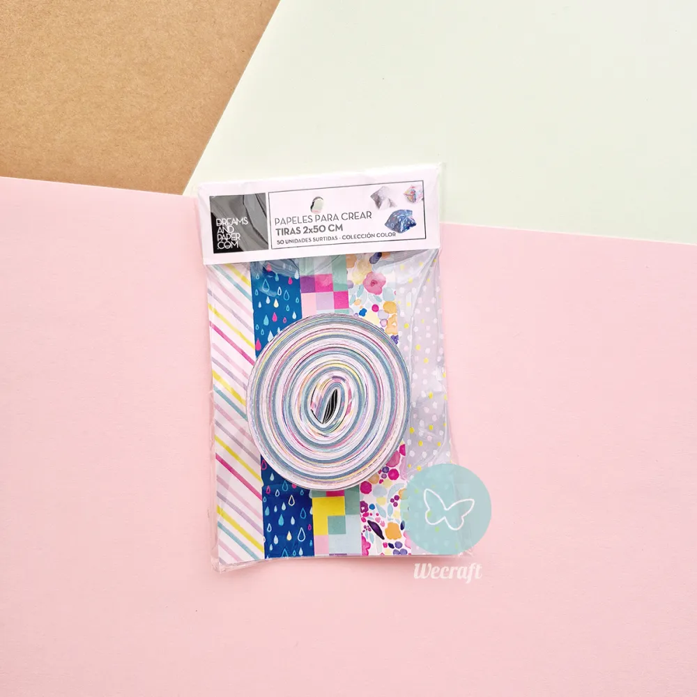 Tiras de Papel de 2×50 cm, en un pack de 50 unidades surtidas 5 motivos Color: Suyai, Huilen, Piren, Mahuen, Rayas.