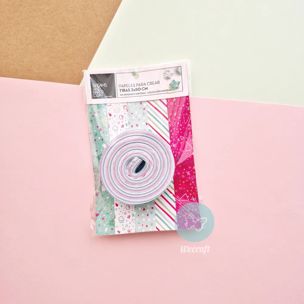 Tiras de Papel de 2×50 cm, en un pack de 50 unidades surtidas 4 motivos de la Colección Navidad
